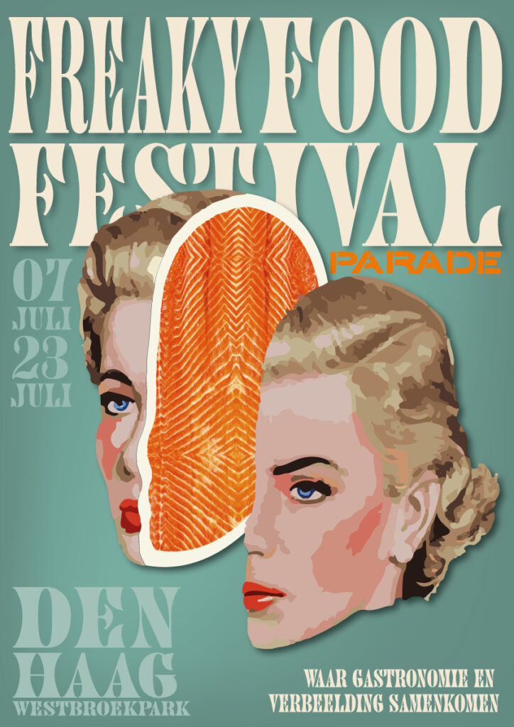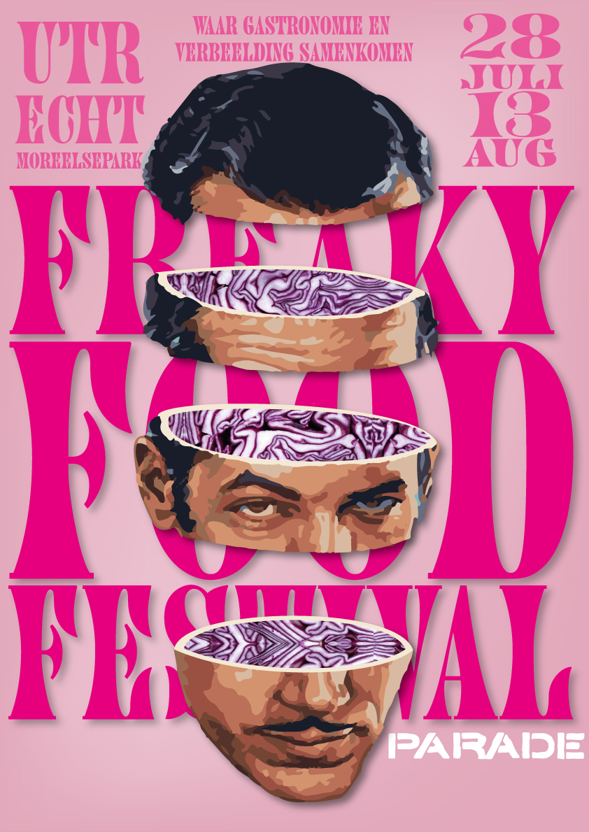 Voor het Freaky Food Festival moest ik een serie van drie posters ontwerpen, één voor elke stad, met één poster als motion poster. De posters moesten de sfeer van het festival “Waar gastronomie en verbeelding samenkomen” krachtig overbrengen, met een eigentijdse uitstraling die aansluit bij de vervreemdende, theatrale en artistieke sfeer van het festival. Elke poster had een ander beeld, en ze moesten samen een visuele serie vormen.